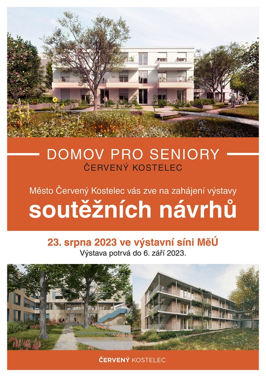 Město Červený Kostelec Vás zve na zahájení výstavy soutěžních návrhů na Domov pro seniory.