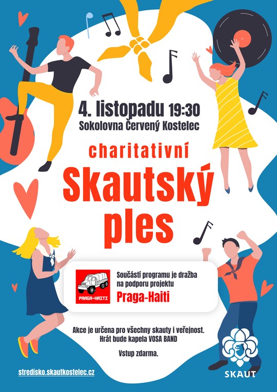 Přijměte pozvání na 4. charitativní skautský ples, který se bude konat 4. 11. 2023 od 19:30 v Sokolovně v Červeném Kostelci.