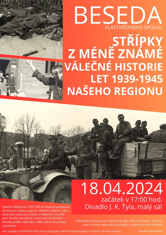 Válečné období let 1939-1945 se hluboce podepsalo do historie našeho regionu. Některé události z této doby jsou notoricky známé, o některých se příliš neví. Na této besedě se s vámi historik Richard Švanda podělí o epizody z války, které dosud byly opomíjeny.