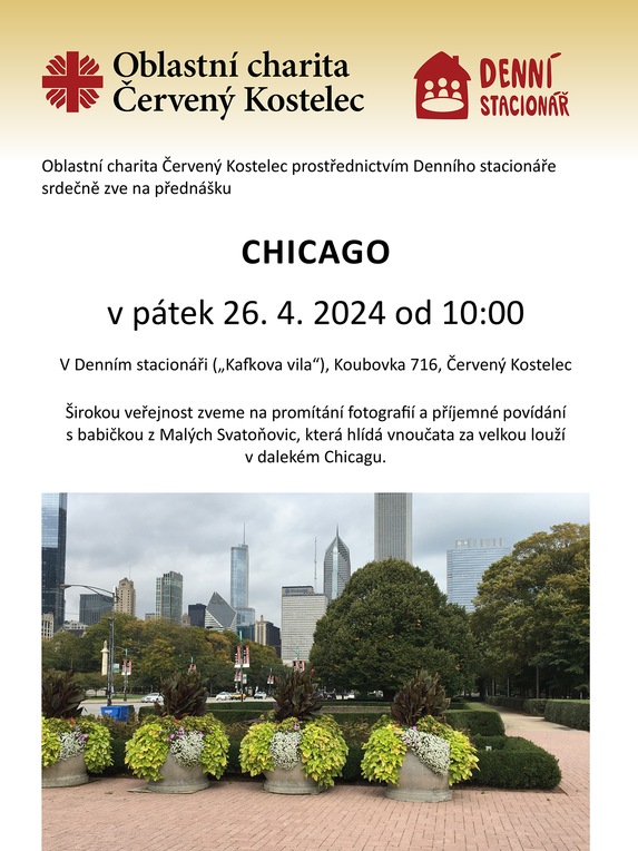 Oblastní charita Červený Kostelec prostřednictvím denního stacionáře srdečně zve na přednášku CHICAGO.