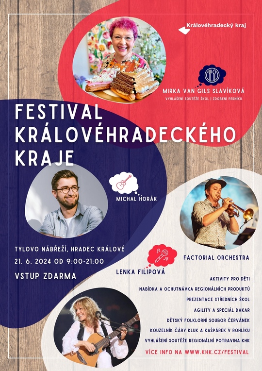 Tato událost slibuje nejen oslavu regionální kultury, ale také propojení regionu prostřednictvím řady akcí a aktivit pro všechny věkové kategorie. Návštěvníci se mohou těšit na bohatý program, který zahrnuje hudební vystoupení různých žánrů, tradiční řemeslné ukázky, gastronomické lahůdky, a mnoho dalšího. Regionální produkty jsou pro náš kraj důležité, proto proběhne i vyhlášení soutěže Regionální potravina KHK, kdy ocenění převezme devět soutěžících lokálních výrobců.