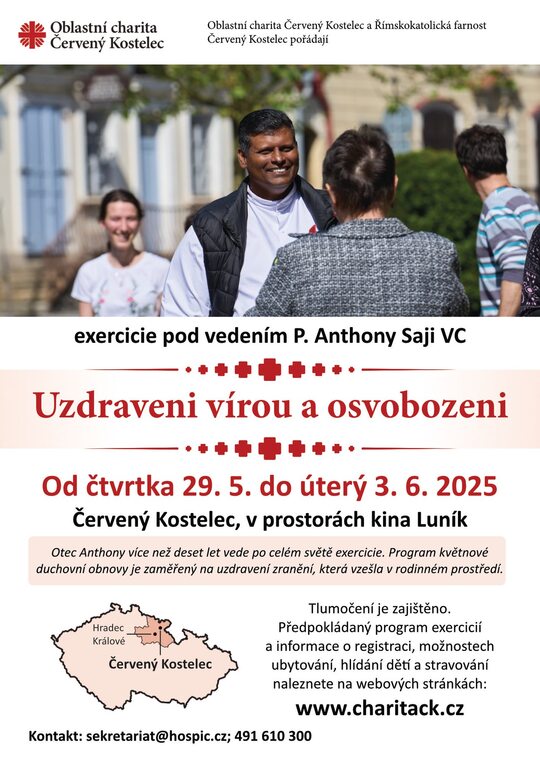 Otec Anthony z kongregace Vincentinů je kněz indického původu, který již více než deset let vykonává misijní dílo především ve Východní Africe. Exercicie vede po celém světě a v České republice již několikrát působil. Program duchovního cvičení je zaměřený na nalezení hlubšího vztahu s Bohem a na osvobození od všeho, co nás zatěžuje v každodenním životě. Kromě inspirativních přednášek obsahuje i další duchovní program s pestrým hudebním doprovodem i prostorem pro ztišení.