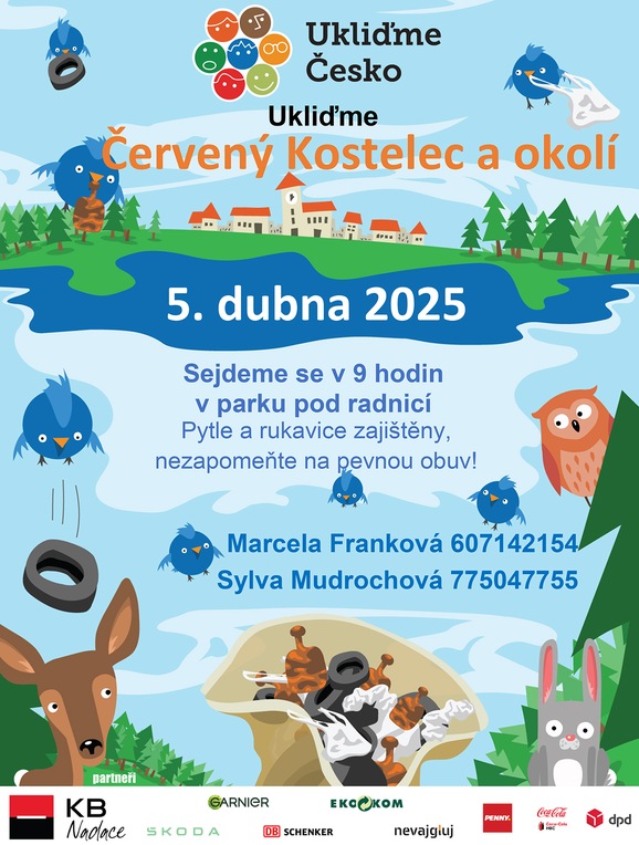 Uklízet budeme celý Červený Kostelec a okolní části obce spadající pod Červený Kostelec (Lhota, Olešnice, Bohdašín, Stolín, Horní Kostelec)