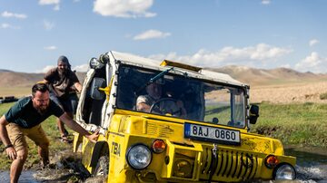Legendární cestovatel Dan Přibáň je zpět s novou výzvou! Tentokrát se jeho slavný žlutý trabant mění za ukrajinský obojživelník LuAZ-967, přezdívaný Žlutá žába. Během 129 dnů a 17 765 km od Prahy až po Ulanbátar zažije tým nespočet divokých i humorných situací, které dokazují, že svět je krásně pestrý, méně nebezpečný, než si myslíme, a hlavně že cestování má smysl. Jak si Žlutá žába poradí s vodou? A je trabant proti ní luxusní limuzína? To zjistíte v dokumentu Žlutou žábou do země modrého nebe, který dorazí do kin od 24. dubna.