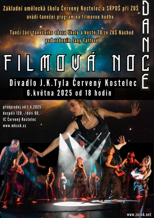 Základní umělecká škola Červený Kostelec a SPPDŠ při ZUŠ uvádí taneční program na filmovou hudbu.
