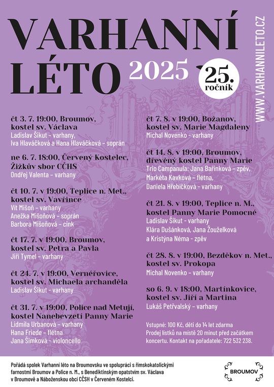 Nenechte si ujít ani ostatní koncery v rámci festivalu Varhanní léto. Celý program naleznete na přiloženém plakátu.