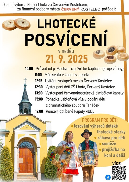 jako každý rok, tak i letos Vás z celého srdce zveme třetí neděli v září, tento rok to bude 21. září 2025, na tradiční posvícení ve Lhotě, které zahájíme od 10 hodin průvodem po Lhotě ke kapličce, kde bude od 11 hodin sloužena mše svatá.