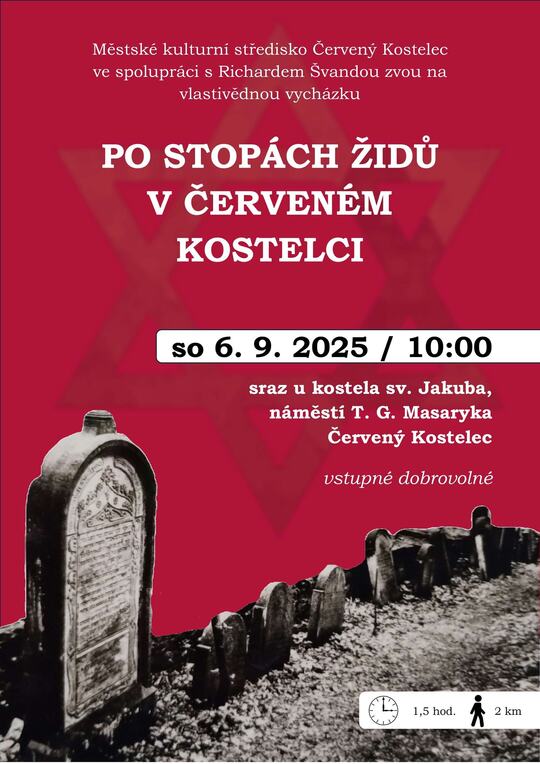 Byla by tu určitě i nadále, kdyby nepřišel nacistický režim. Společně budeme pátrat po osudech místních rodin a ukážeme si místa, která jsou s židovskou komunitou v našem městě spojena. Procházku povede Mgr. Richard Švanda - historik, autor mnoha regionálních publikací, odborných knih a článků.