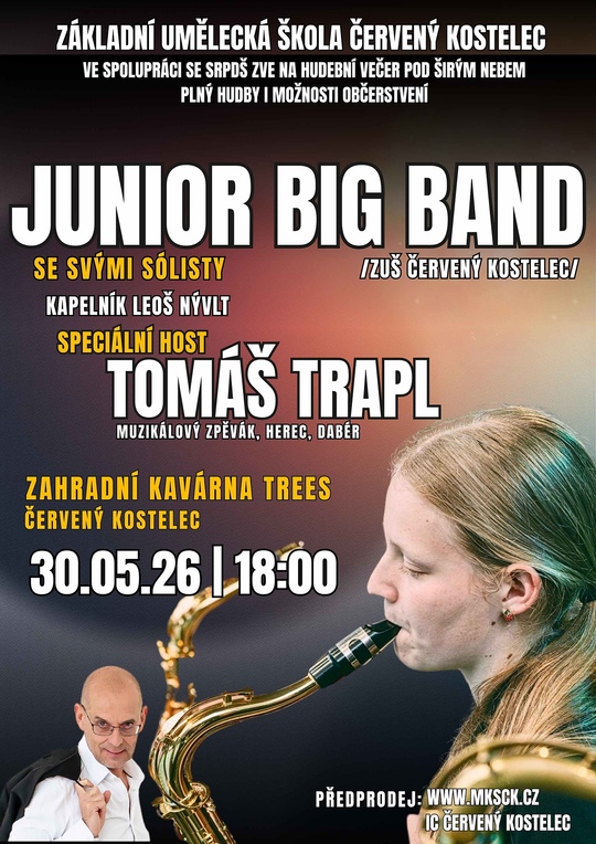 Vystoupí Junior Big Band se svými sólisty a kapelníkem Leošem Nývltem. Těšit se můžete na speciálního hosta Tomáše Trapla – muzikálového zpěváka, herce a dabéra.