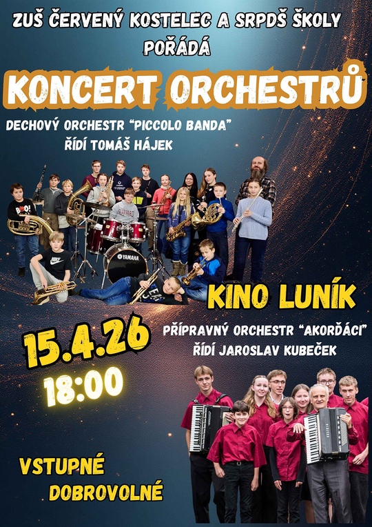 ZUŠ Červený Kostelec a SRPDŠ školy pořádá Koncert orchestrů.