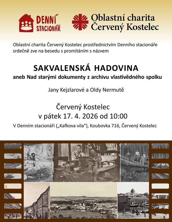 Oblastní charita Červený Kostelec prostřednictvím Denního stacionáře zve širokou veřejnost na promítání fotografií a vyprávění Jany Kejzlarové a Oldy Nermutě s podtitulem " SAKVALENSKÁ HADOVINA".