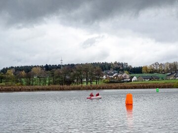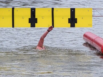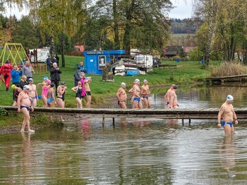 V sobotu 5. listopadu 2022 se v areálu kempu Brodský uskutečnil 4. ročník soutěže otužilců v zimním plavání pod názvem Brodský rampouch. Otužilci závodili na trasách dlouhých 250 až 1000 m. Pro veřejnost byla připravena trasa o celkové délce 100 m. Foto: Jan Brož
