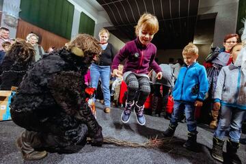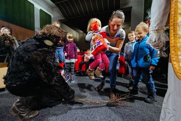 V sobotu 3. prosince od 15:00 bylo v Divadle J. K. Tyla připraveno pro diváky loutkové představení Kašpárek a princezna v rámci Loutkového festivalu 2022. Pohádku obohatila návštěva opravdových čertů, která hodným dětem nadělila drobný dárek. Foto: Martin Kábrt