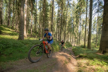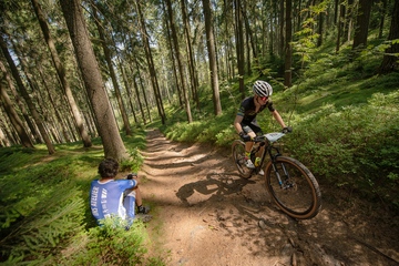 Přilákala je nejen dobrá předpověď počasí, ale také trať v nádherné krajině Jestřebích hor, kterou vymýšlí a každoročně vylepšuje Michal Kaněra. Hlavní závod na 40 km se skládá ze dvou dvacetikilometrových okruhů s nemalým převýšením a řadou náročných technických úseků. Kdo si na to netroufne, může se přihlásit na jeden 20 km okruh.