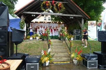 Sobotu jsme všichni společně zahájili v deset hodin festivalovou mší, po které proběhlo setkání se starostou a místostarostou města zakončené společnou fotkou v areálu festivalu.