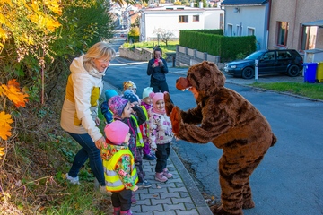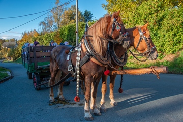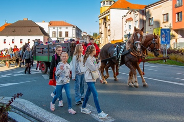 Tradiční průvod s hudbou a koňským spřežením se letos vydal opět běžnou cestou ulicemi Na Skalce a Sokolská. Počasí se tentokrát vydařilo a účastníci tam mohli pochodovat v bezvětří a pod slunečnou oblohou, a naplno si tak vychutnat krásy okolní podzimní přírody. Po mši svaté se průvod vydal zpět do Olešnice, kde veselí s hudbou a dobrým jídlem pokračovalo v místní sokolovně až do odpoledních hodin.