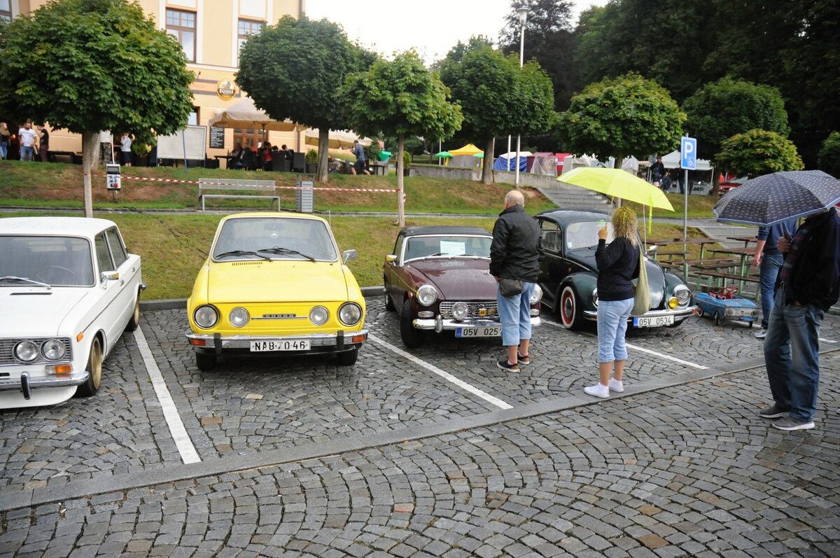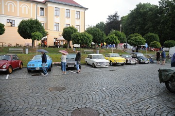 Vystoupení posledního souboru ale narušil déšť, které též poznamenal přehlídku veteránů, které přijeli představit členové klubu KHV Metuje. Ale i tak si je tančící, kteří přijeli ze všech koutů zeměkoule, se zájmem prohlédli.
