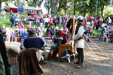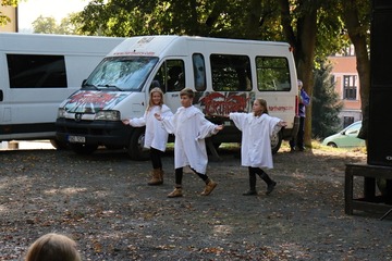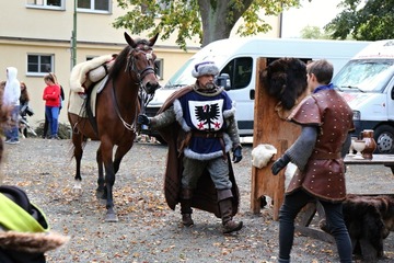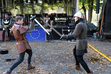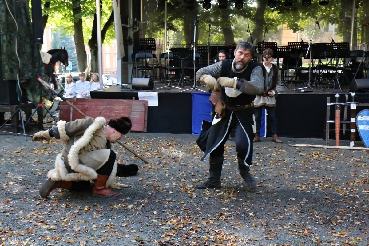Další program již pokračoval v areálu, kde se se scénkou o posledních chvílích knížete Václava představili členové historického šermu Manové Přemysla Otakara. V několika vstupech se představily i mažoretky Merian a městský dechový orchestr, který vystoupil společně s dechovým orchestrem z partnerského města Zabkowice Slaskie. Děti se zase zabavily u pohádky O veliké řepě, nebo u výroby lampionů, které následně využily při lampionovém průvodu a hledání pokladu.