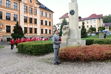 Na úvod slavností byl za účasti městského dechového orchestru a mažoretek Merian symbolicky odhalen nově zrekonstruovaný pomník padlých - legionáře, který je umístěn v prostoru mezi školami. Zároveň byly připomenuty i historické události tohoto památného dne.