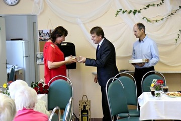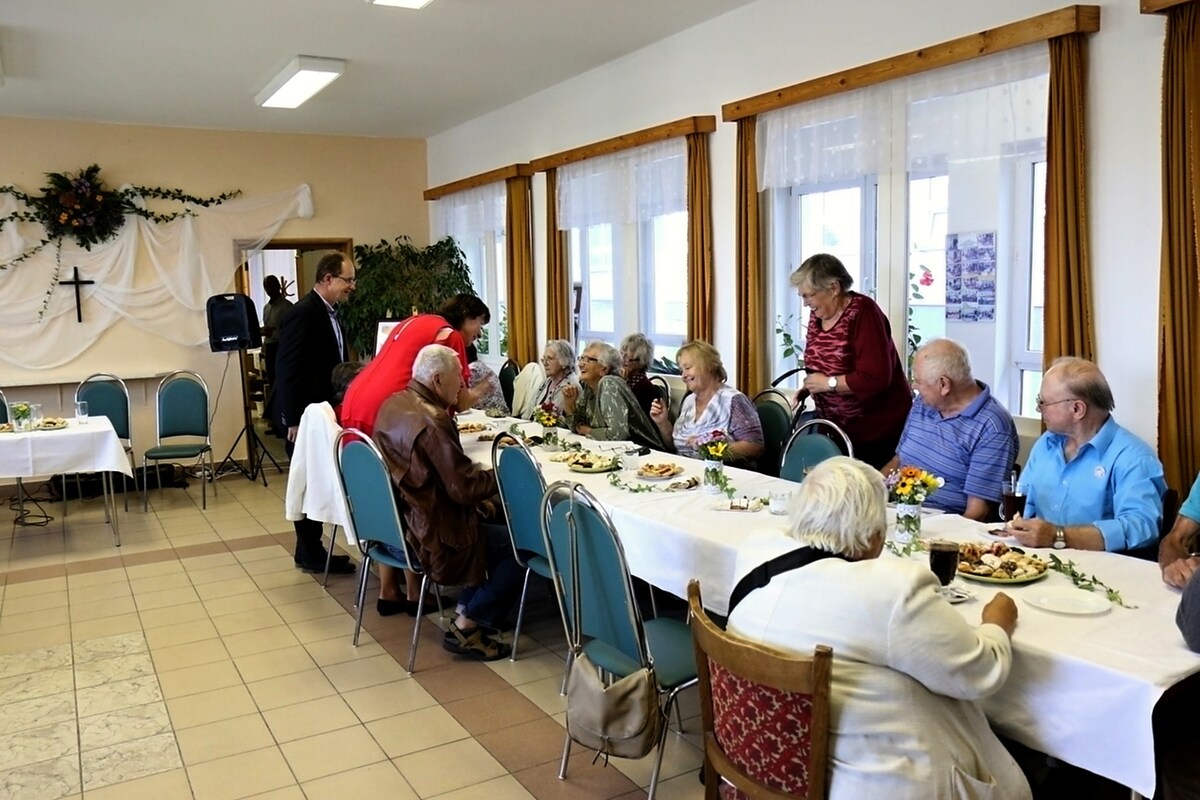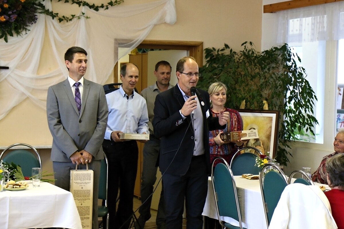 V odpoledních hodinách navštívilo domov vedení města, které je zřizovatelem a zástupci sociálního odboru z MěÚ. Pro obyvatele pečovatelského domu byla připravena beseda, kde na úvod poděkovali zástupci města vedení a celému personálu domova za svědomitou péči o obyvatele. V následné besedě se senioři dozvěděli, co vedení města plánuje do dalších let a co je reálné realizovat. Prostor na otázky dostali i senioři. Po besedě ještě následoval kulturní program pro pobavení místních obyvatel.