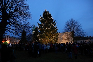 Na první adventní neděli se u náměstí T. G. Masaryka v Červeném Kostelci rozzářil vánoční strom a připomíná tak začátek adventního období.