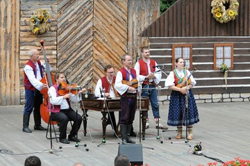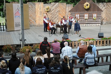 Nedělní dopoledne ještě návštěvníkům MFF zpříjemnily v přírodním areálu cimbálové muziky.