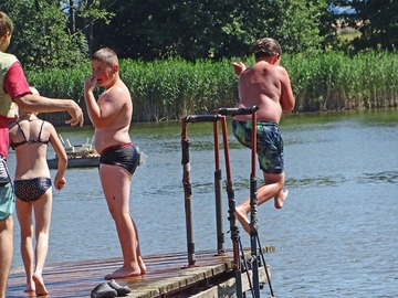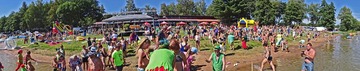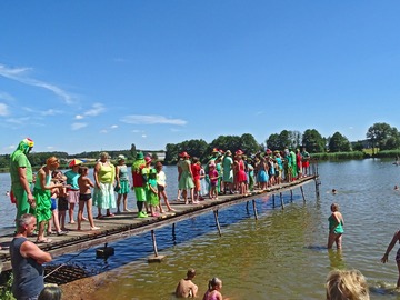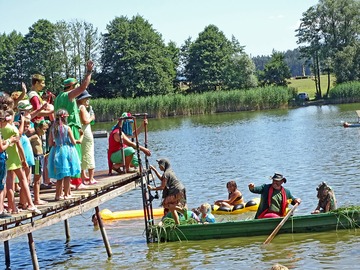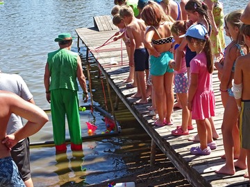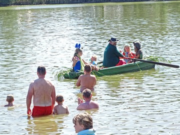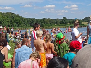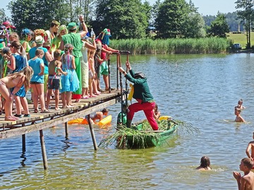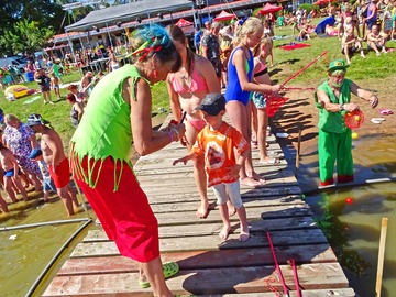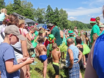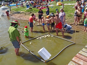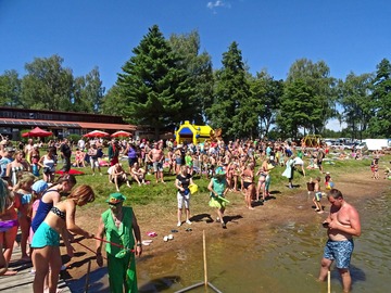 Teplé a slunečné počasí bylo ideální pro rojení vodníků. Na Broďáku jich tak bylo možné potkat několik desítek. Hlavní program pro příchozí byl připraven v sobotu po poledni. V areálu kempu a na rybníku se bylo možné zúčastnit řady her a soutěží, poslechnout si hudební vystoupení a samozřejmostí bylo bohaté občerstvení. Program zakončil ve večerních hodinách nadvodní ohňostroj. Foto: Jan Brož