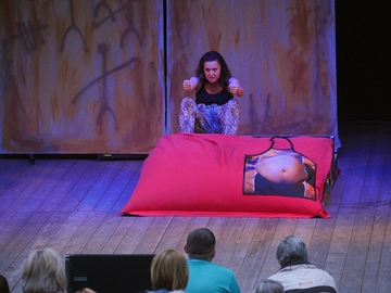 Emma Peirsonová se ocitla v roli jeskynní ženy a celé představení odehrála s náležitou grácií. Nejenže prostor pódia naprosto ovládla, ale ještě s nesmírnou lehkostí dokázala improvizovat s diváky. Hlavní aktérka doslova žonglovala se slovy a vytvářela vtipné vstupy, kdy reagovala na své publikum. Publikum se nenechalo dlouho přemlouvat a začalo s talentovanou herečkou spolupracovat. Výsledkem byl zajímavý zážitek a fungující chemie mezi podiem a návštěvníky. Scénáristicky bylo představení připravené do posledního detailu. Dějová linka postupovala rychlím tempem a byla protkána spoustou vtipných momentů.