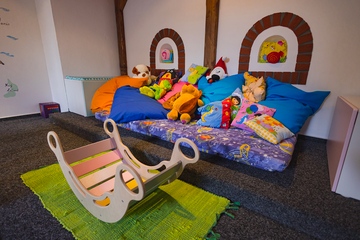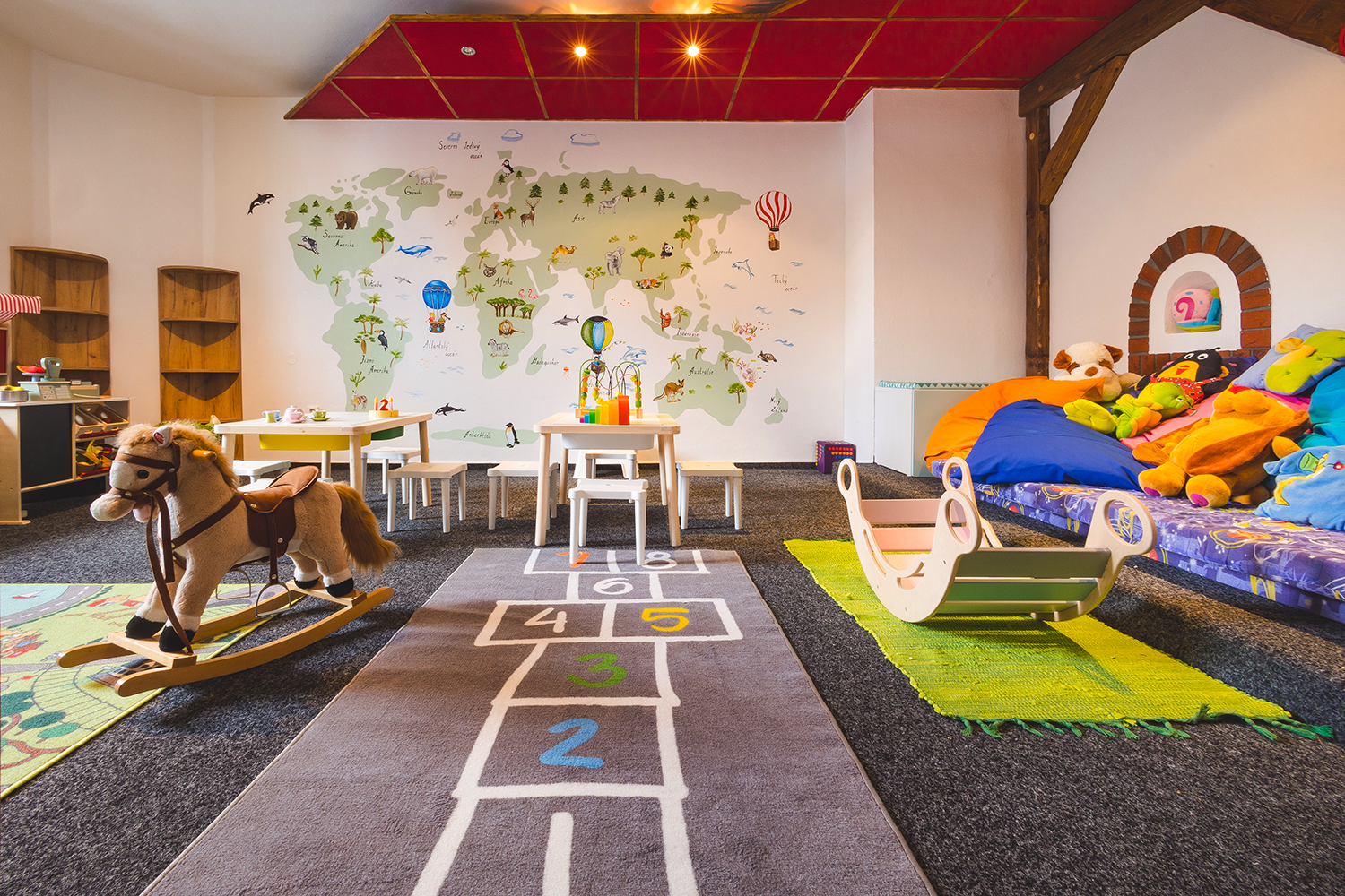 Pro naše nejmenší je k dispozici herna, vybavená prvky pro rozvoj jemné i hrubé dětské motoriky, didaktickými a psychomotorickými hračkami a dalšími. Rodiče si mohou dát kávu či čaj a vzájemně si popovídat...