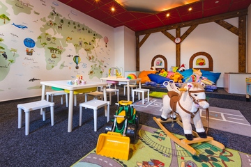 Pro naše nejmenší je k dispozici herna, vybavená prvky pro rozvoj jemné i hrubé dětské motoriky, didaktickými a psychomotorickými hračkami a dalšími. Dětská herna je vybavená i hrami od Albi. Rodiče si mohou dát kávu či čaj a vzájemně si popovídat...