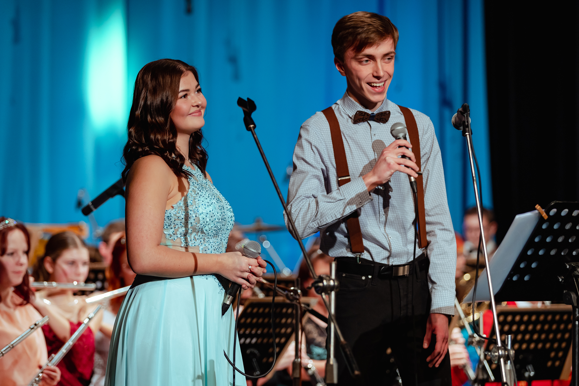 Na tento nádherný pohled si jistě každý vzpomíná z vánočního koncertu 2022. Ano, jsou jedni z našich nejmladších stálých členů orchestru Pavel TOMEK a Barbora NÝVLTOVÁ, kteří svým příjemným hlasem dokáží rozveselit mnohé posluchače.