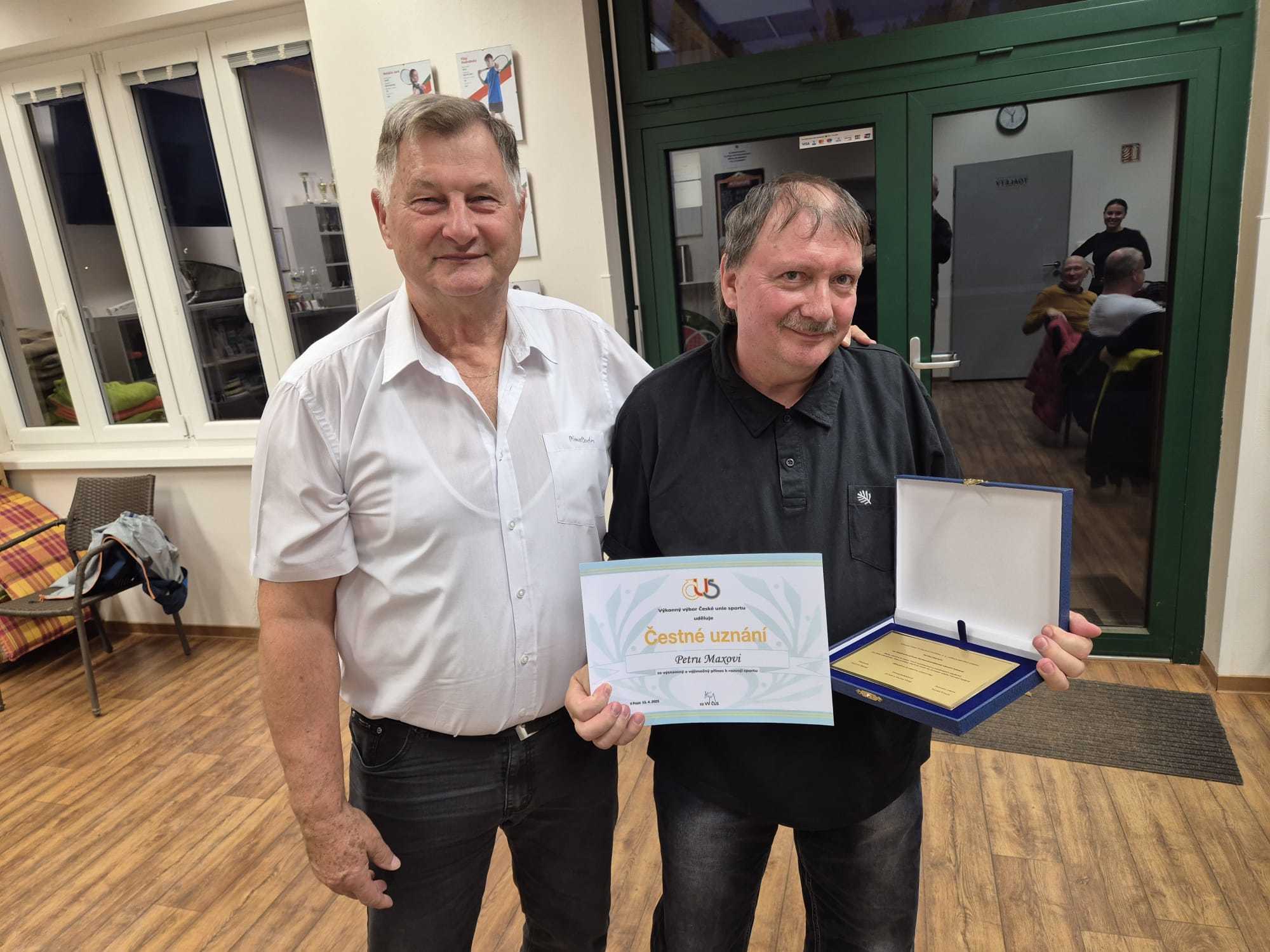 Na valné hromadě došlo také k ocenění dvou dlouholetých funkcionářů TJ. Prvním oceněným se stal Petr Maxa, předseda oddílu národní házené, který na valné hromadě oficiálně ukončil svoji činnost.